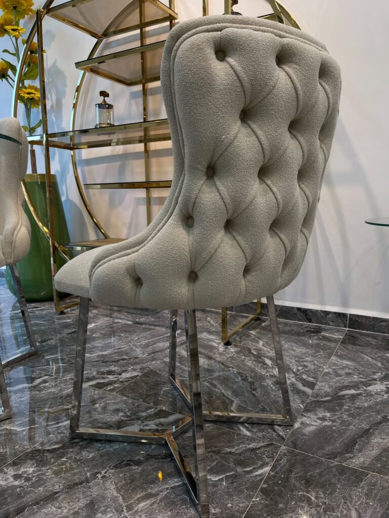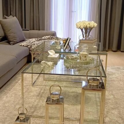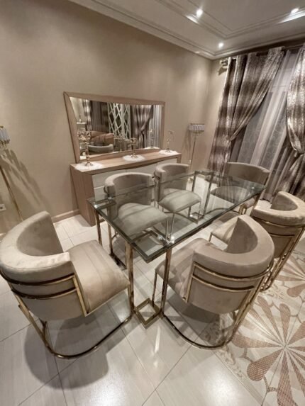 Table à Manger Luxe 6 Places en Verre Trempé & Inox Doré